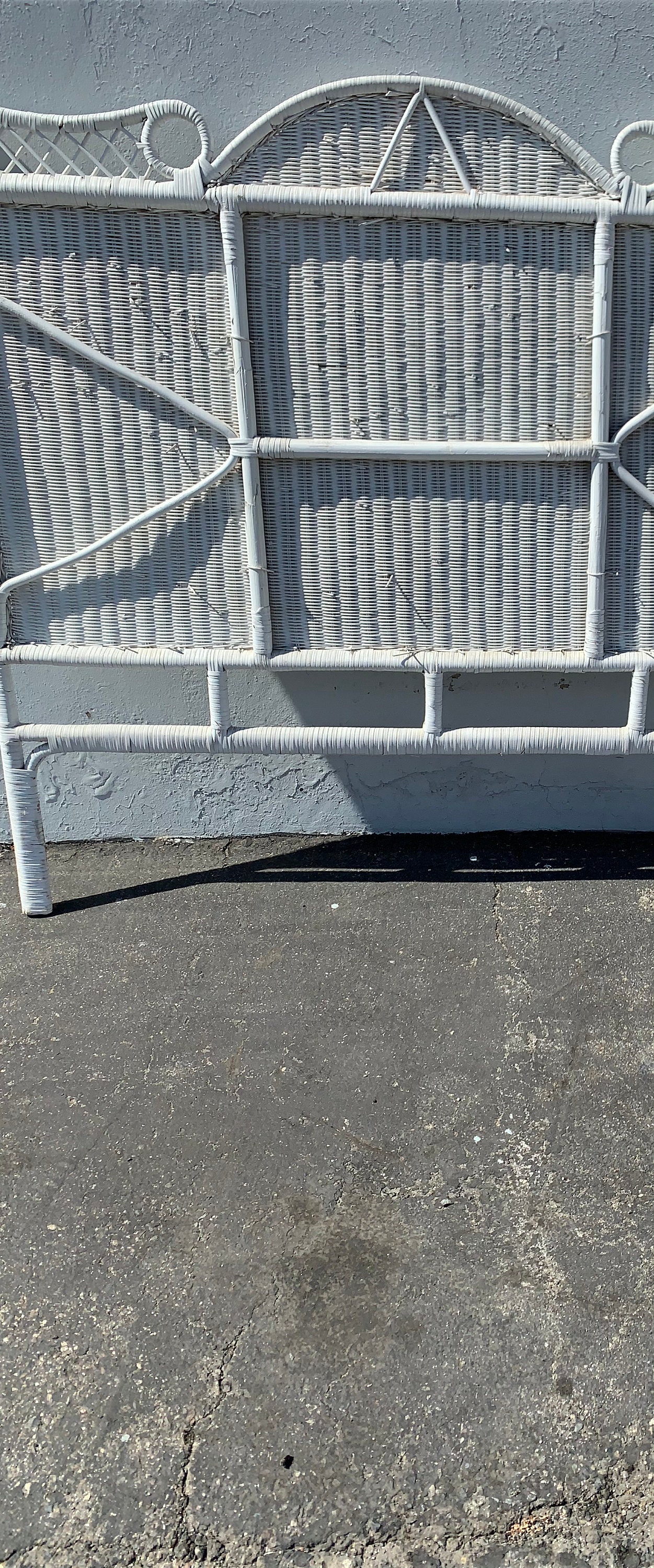 This rattan headboard is finished in neutral white color.