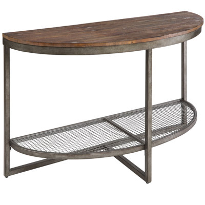 Rub your hands over the solid pine top to feel the natural beauty of the wood, combined with a heavy metal frame, and accented with a lower wire mesh shelf for storage.