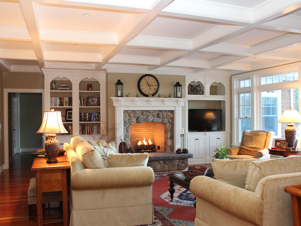 75 oz decanter, 6 x 9. Example of a large transitional formal brown floor and shiplap ceiling living room design in boise with white walls, a standard fireplace, a plaster fireplace and no tv. Check out these timeless solutions to make this welcoming american traditional design go together in your american traditional living room from room ideas. This strategy is easy and affordable. Design ideas for a classic open plan living room in london with a reading nook, beige walls, light hardwood flooring, a standard fireplace, a wall mounted tv and beige floors.